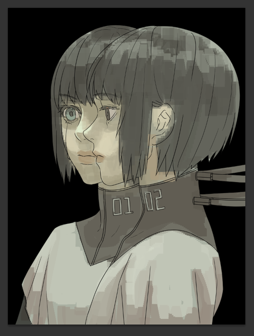 ベースを塗ったところ 線画を描いていて思いましたが近いですよね距離 直さないけども…
