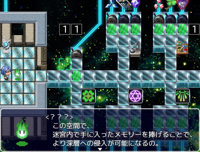 君はアリスチャン! 一階の右と左、倒さなくても先に進める系っぽいので後から来る感じかなと思ったけどちゃんと倒せました。 分身の子は一回ボコボコにされちゃったんだけどアリスチャンから全体攻撃を教わったので一網打尽に。 ロックマンのボス武器みたいでいいすね。 あと絵がかわいい。