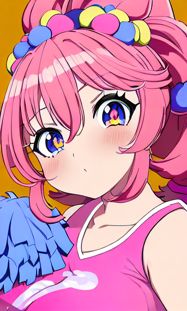 ならば、チアリーダーだと分かるアイコンを絵に組み込めばいい!そう、手に持っているポンポン (pom poms) だ!!と思ったまでは良いが、ここから新たな苦難が始まる……「pom poms」の詠唱強度が弱い!こら、頭にポンポンっぽい装飾を着けて満足しているんじゃない!! #ゴディAI #チアリーダー死闘編