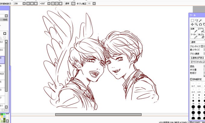 アタリから着彩ラフまでーー ラフから線画で結構変わる