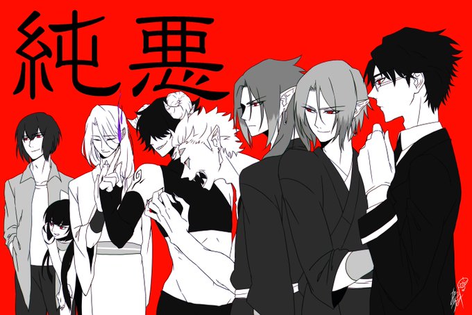 お絵かきでペンを握れていないので、前に描いたやつだけど…。 鎌九楽ファミリー、鬼双子弟の紅鬼くん