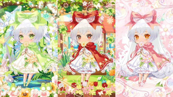 三姉妹お揃い衣装……!それぞれの眼の色に合わせて服を着せていただき嬉しいです!