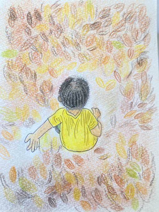 背景はパステルで下地を塗り、色鉛筆で落ち葉を表現…落ち葉ありすぎて大変だったけど、色の重なりが好き🍂