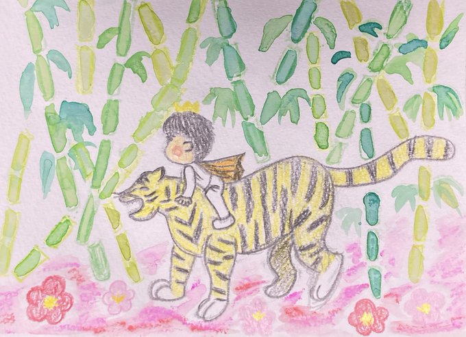 描きながらとても可愛い3人のお子様に癒されてました💕2022年のスタートとなるよう、寅年やお正月をモチーフに🐯✨