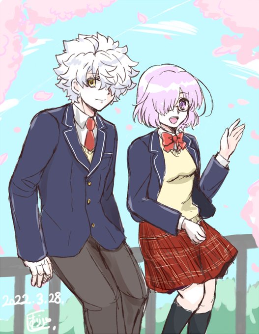 通学路で藤丸待ちのマシュとギャくん
