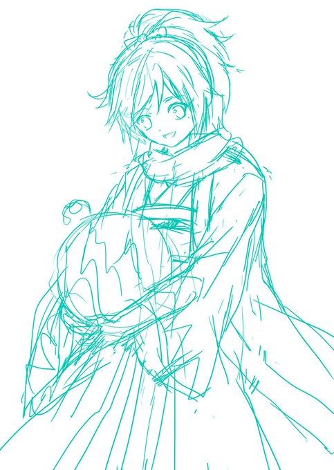 リハビリも兼ねて、久しぶりのワンドロです。最近暑くて、涼しげな水色の服を描きたくて、大和守安定くんです。