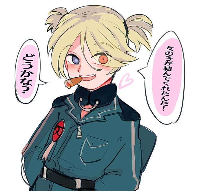 @Syarekobe_TL ノラ「なんか、今日ツインテ?の日なんだって~!よくわかんないけど、女の子が髪結んでくれたんだぁ~♥」
