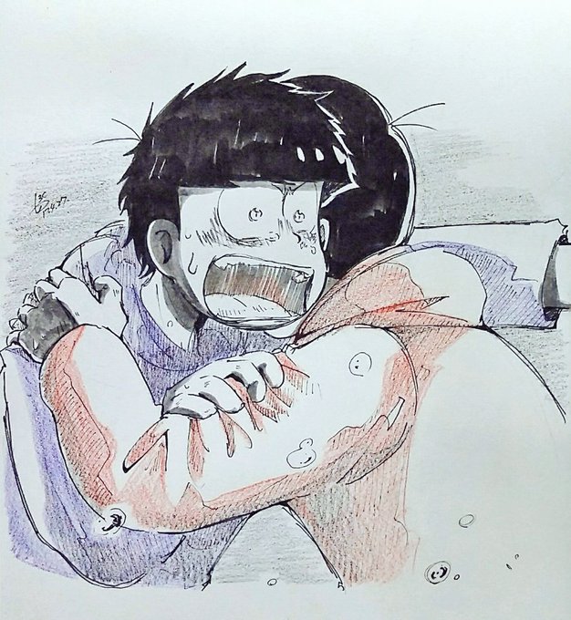 #しばたか式絶被ジト目松 チャイナ服カラ松で参戦です。 アナログで失礼します♪