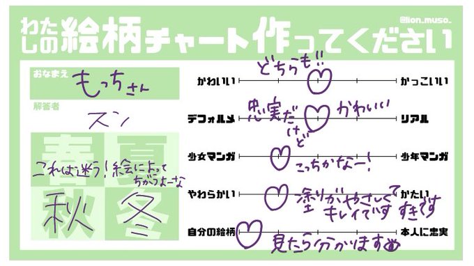 @2b_1vw3 できましたん!!!ついでに流行りのチャートも!!!ムラムラした感じのグラデーションの塗り方が全体的に大好きです!!!