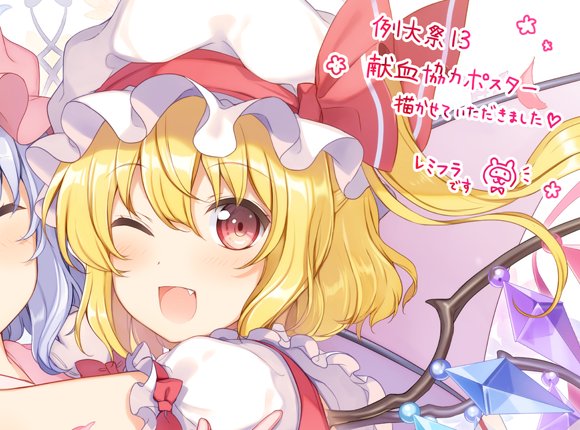 【告知】第13回博麗神社例大祭×赤十字血液センターさんコラボ企画の献血協力ポスターにイラストを描かせて頂きました!レミフラです(*'ヮ'*)当日献血にご協力お願いします*