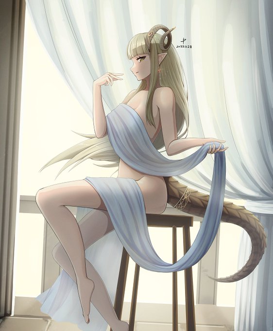 昨年掘り起こされて以来時々描かれているモデルさんドラゴニュート。他人よりねじれた角がコンプレックスだったりしたかも知れない。