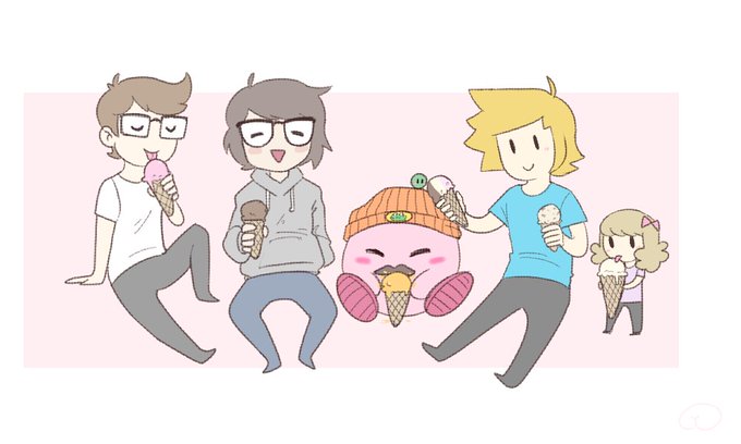 a happy kirb and his good friends enjoying some iced treats uwu