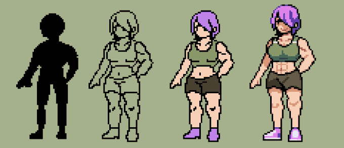 While searching in my files I found this process I made, someone would be interested in a sprite commission like this? (Like the final version in the right) #pixelart#myart#oc