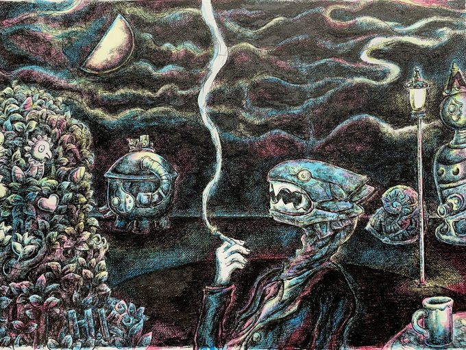 絵の依頼を受けて、今回はダークなイメージで、以前描いた、ダンクルオステウス君をまた描きました🎨✨