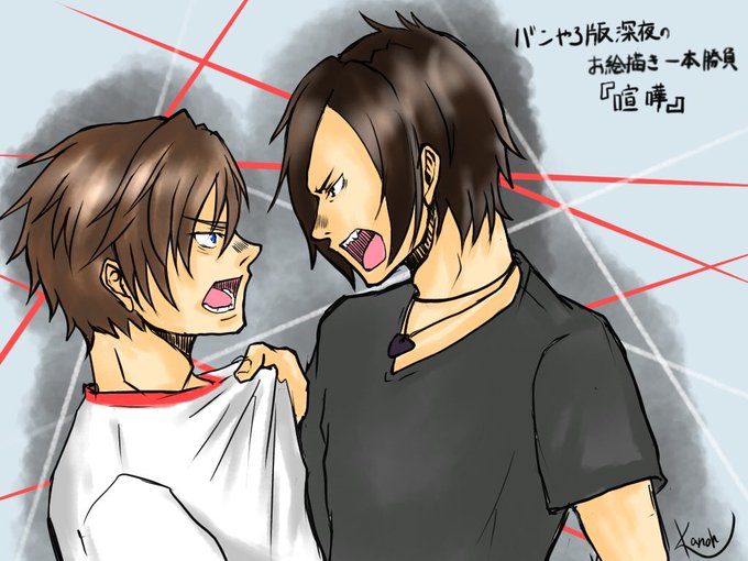 #バンやろ版深夜のお絵描き一本勝負 お題【喧嘩】 喧嘩の内容は、 昼ごはんをマッ◯と吉◯家どっちに行くか😌