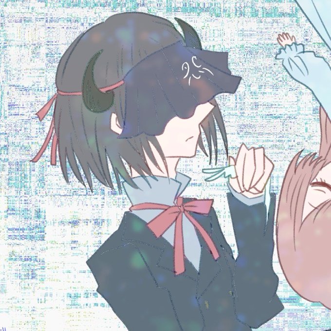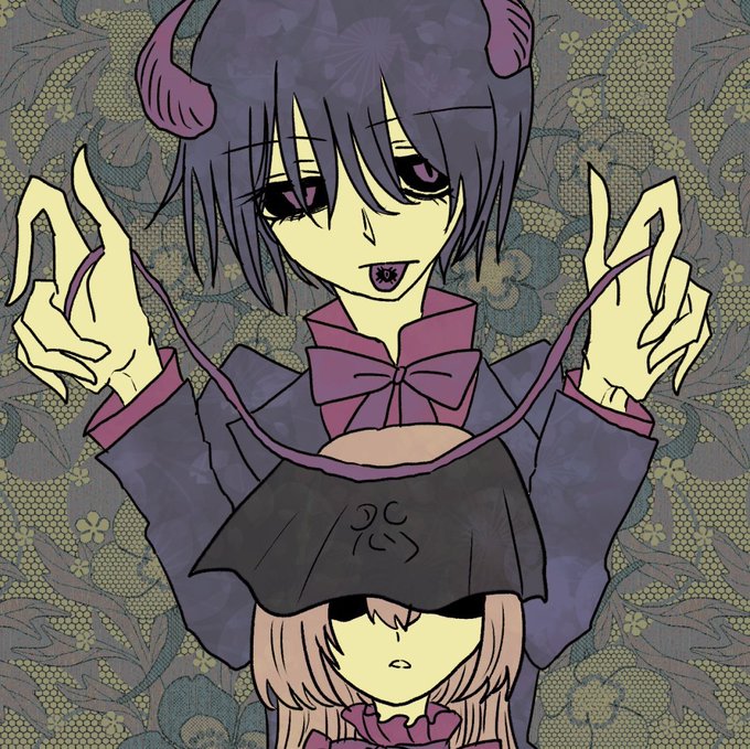#お宅の創作キャラクターに目隠れっ子がおられましたら是非ご紹介下さい 拗れた執着心に本人も気付かぬまま、大好きな女の子を大切に大切に束縛(物理)している人間嫌いな悪魔のあくまさんです😈