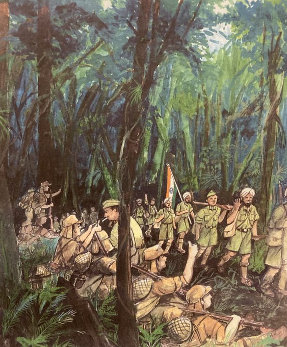 1944年7月12日 インパール作戦中止 河邊中将は中参謀長をチャンドラ・ボース主席のもとに派遣し、戦況全般にわたって詳細説明を行うと共に、インド国民軍を後退せざるを得ない事情を通告。 ボース主席は中参謀長の説明により、作戦中止の事情は了承したが、なおインド国民軍は万策を尽くして