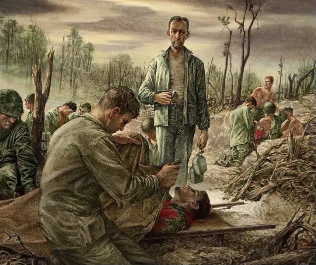 誰かが殴って意識を失わせようとしたが効果はなし。次に衛生兵がモルヒネを注射して落ち着かせようとしたがこれも効果なし。最終的にある兵士がシャベルを持ち出して、彼の頭を叩きつけ殺害。 ※1人の犠牲で大勢の仲間を救う結果にはなったが、仲間内での殺害は兵士には苦しい出来事だった。