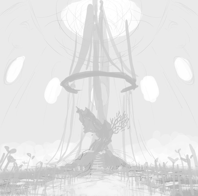 島のコンセプトアート。 ラフ。 何度もやり直したけど、これを元に進めようかな・・。 #SANAtoRIUM_Art