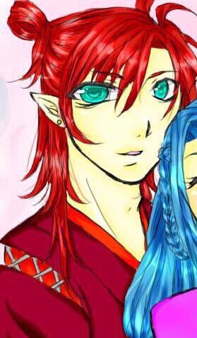 紗那(しゃな) これも髪の毛。珠那が青髪だから、弟は赤。あと耳。ほんとは牙もあるで。こっちは鬼の血が強く出てるから。 珠那と同じ目の色ね。
