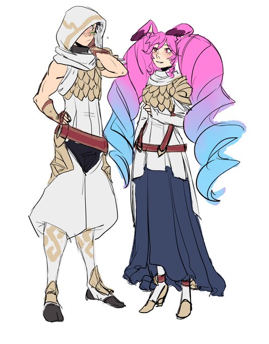 hey my thumb’s healed enough to where I can draw again! here’s doodles of Dragalia Lost's Vice and Cleo in Order of Heroes and FEH Easter-inspired outfits because why not