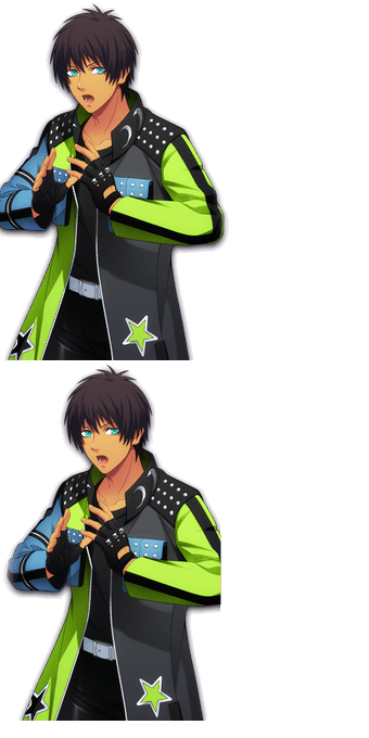Eiichi/Racer "The one who will take the checker flag of love, is me!" Eiji/Florist "People and flowers, both bloom as beautiful as the love we put into them"
