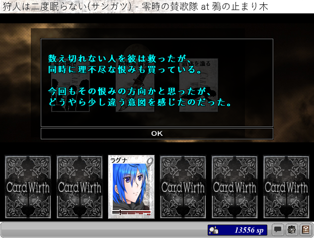 狩人は二度眠らない 了 殺人事件の容疑者はまさかのリーダー!?そこから見えてきたものはより大きな陰謀の姿が—— 培った冒険者としての信頼、仲間への信頼。信頼とは価値なのだと知らされるシナリオで面白かった~!
