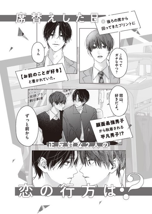 ましろいと先生(@iam_ito_)の『席替えしたら、どうやら後ろの男が俺のこと好きらしい』にて、カバーイラストと挿絵を描かせていただきました🎀 8/20発売で、一部書店様では8/7頃から店頭に並び始めるみたいです!