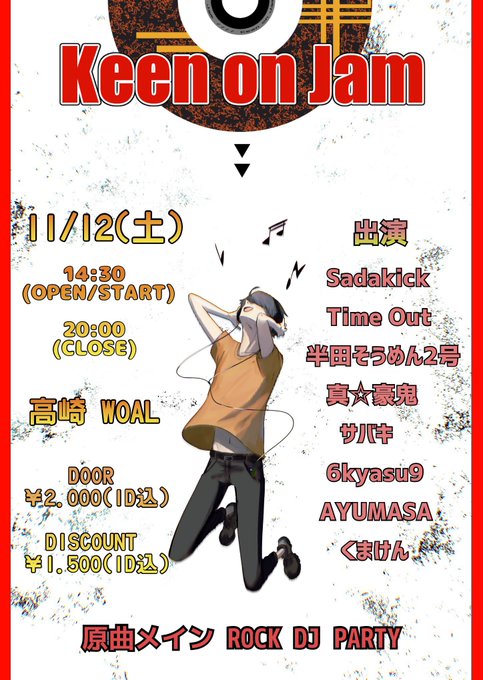 ロック好きは11/12(土)14:30から高崎WOALさんまで遊びに来てくだしあ!