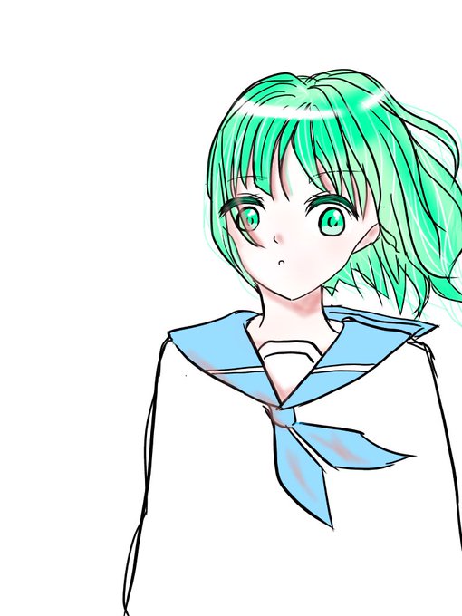 かいた!!水色の髪の子初めて!