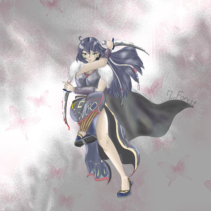#今月描いた絵を晒そう 4周年記念絵 双翼刃リ・トゥ 誰でも描けるモルルッソ 背伸びユーニィ