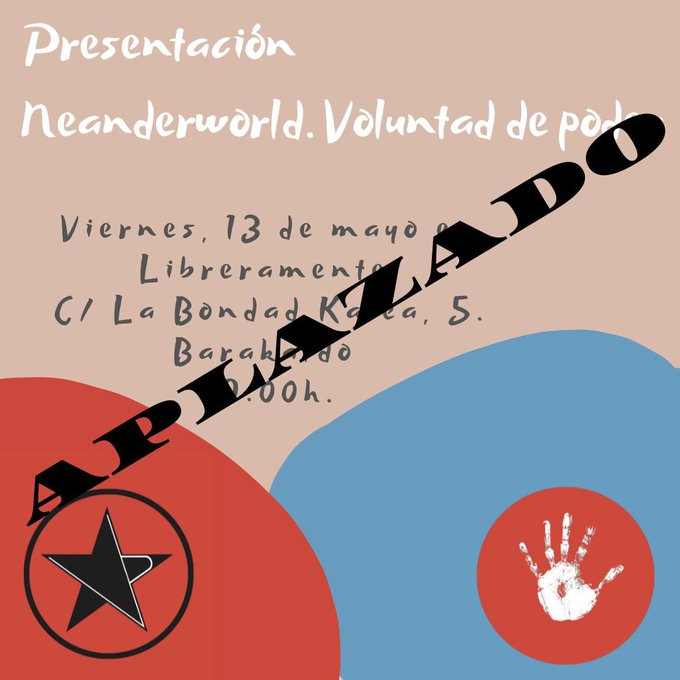 🤷🏻♂️Lamento comunicaros que hemos de aplazar la presentación de “#Neanderworld. voluntad de poder” programada para este viernes.