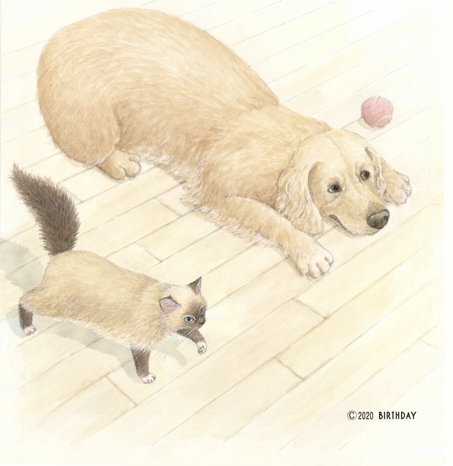 ゴールデンのパスクは赤ちゃんの頃、モリーの爪の洗礼を浴び決っして自分から近づく事はありません。