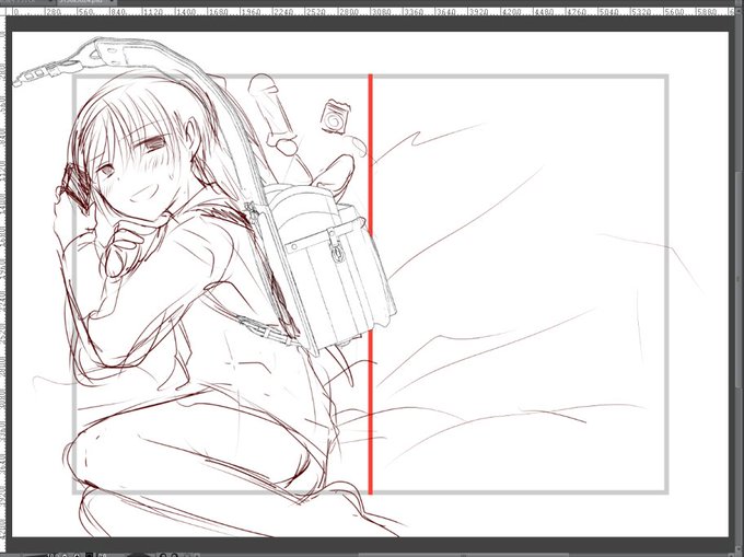 表紙のラフ…クリスタの3Dのランドセルの素材ぶち込んでみたけど便利やなあ…( ˘ω˘)