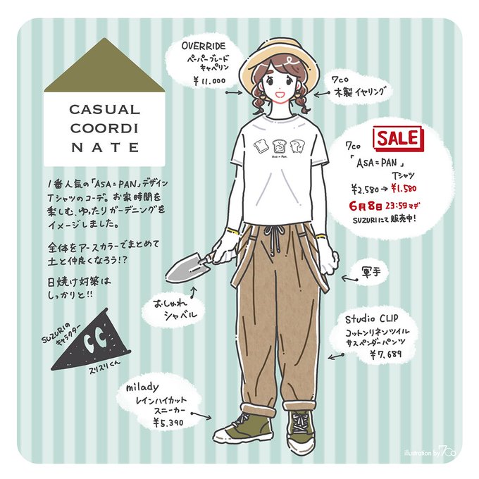 前回セール時に描いたコーデイラストを置いておきますので、ご参考にどうぞ🌷🍞