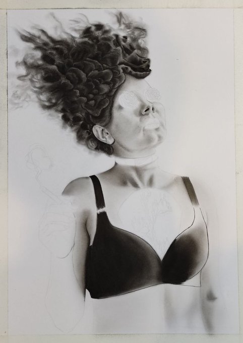In this collection I photographed my model, then added details and finally painted with charcoal and pencil.