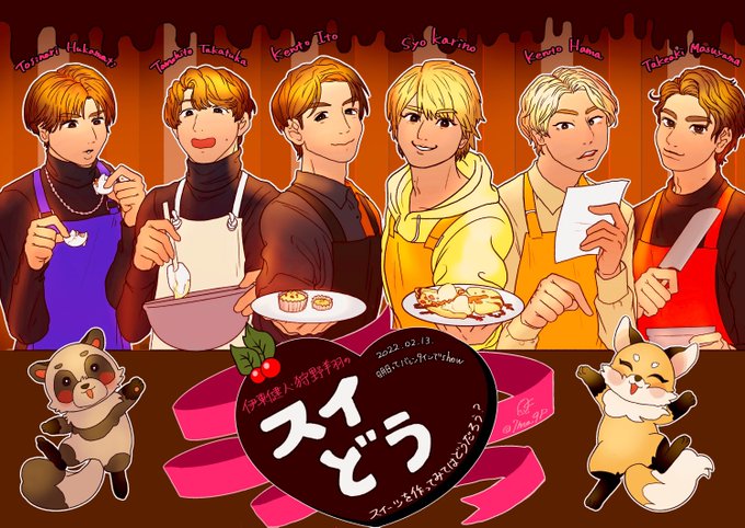#スイどう さんバレンタインイベありがとうございました✨のイラストアゲッ💪😊全員が全員美味しいものを食べられたようで見てるこっちもホコホコとした気持ちで見れました…(現地)スイーツ男子に幸あれ…🍰