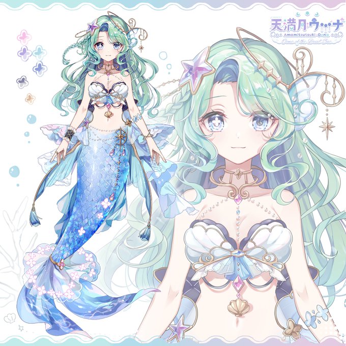Vtuberの天満月ウーナちゃん( @OonaoftheDead )のキャラクターデザインとお姿を担当させていただきました!太古の昔から生きている、可愛くてちょっとおそろしい人魚です!ぜひとも応援していただけたら嬉しいです✨🌕✨