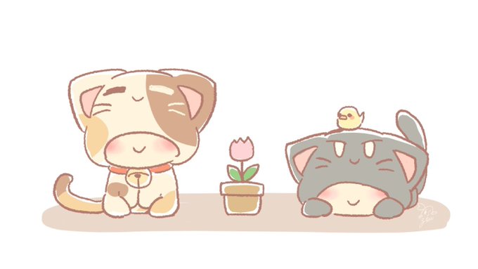 なかよしさんですねぇ(*ฅ́˘ฅ̀*)🌸 #たべねこ
