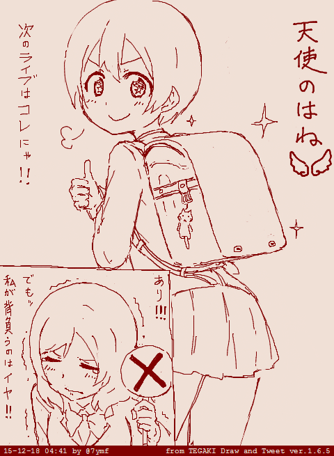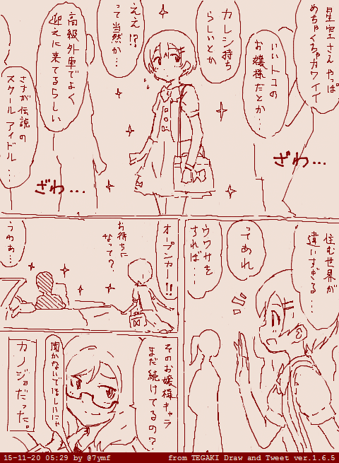 まきぱな不在の慣れない環境に緊張したのかしょっぱな「お嬢様キャラ」を発動してしまい不本意な大学デビューを飾ってしまった凛ちゃんは以下略 #tegaki_dt