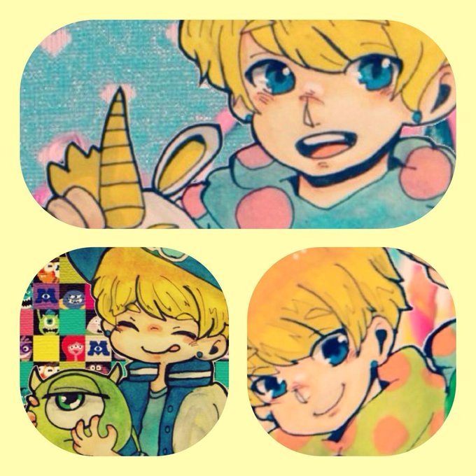 十祭で配るシールのデザイン考えてた!こんな感じで7人描こうかな、と考え中。 例:横山裕