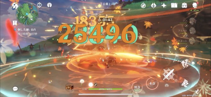 万葉と魈くんだけ交代してジンアルベドベネットの同じ編成でコーギーボコしてみたけど最大ダメージが魈くんが合計101,934なのに対して万葉が拡散ダメージと合わせて104,336で魈くんに申し訳なくなってしまった