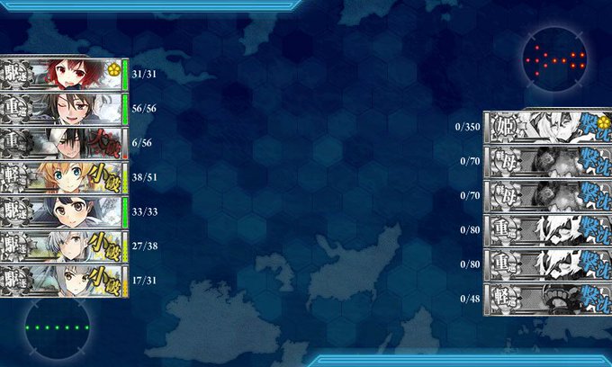 E5乙クリア ボスにラストシューティング決めたのは我らがにゃしぃ!そして最後のドロップは浦波…君決戦モードあったんか…