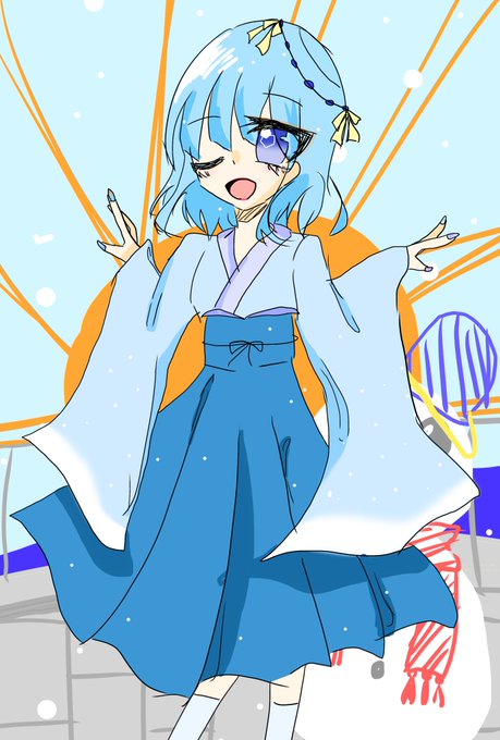 着物?みたいなのが描きたくなったので作りました。雪花たんです。(※キャンディは季節を気にしません) 「雪降る朝に。」 ネイルとかも凝ったので見て欲しいです…! #パトパトギャラリー
