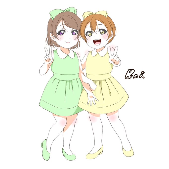 過去絵でごめんなさい😭 ほのちかちゃん お誕生日おめでとう🍞✨🍊 #高海千歌誕生祭2019 #高坂穂乃果誕生祭2019