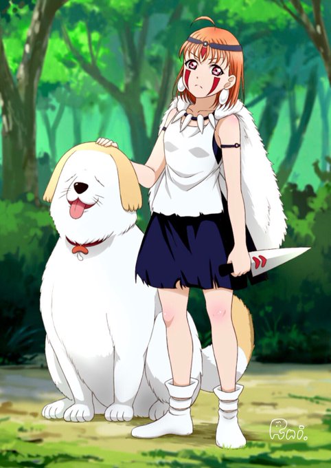 Aqours×ジブリ 第1弾 ちかちゃん×サン+しいたけ! 背景ズルしました🙊💫 アイビス素晴らしい👏🏻👏🏻👏🏻