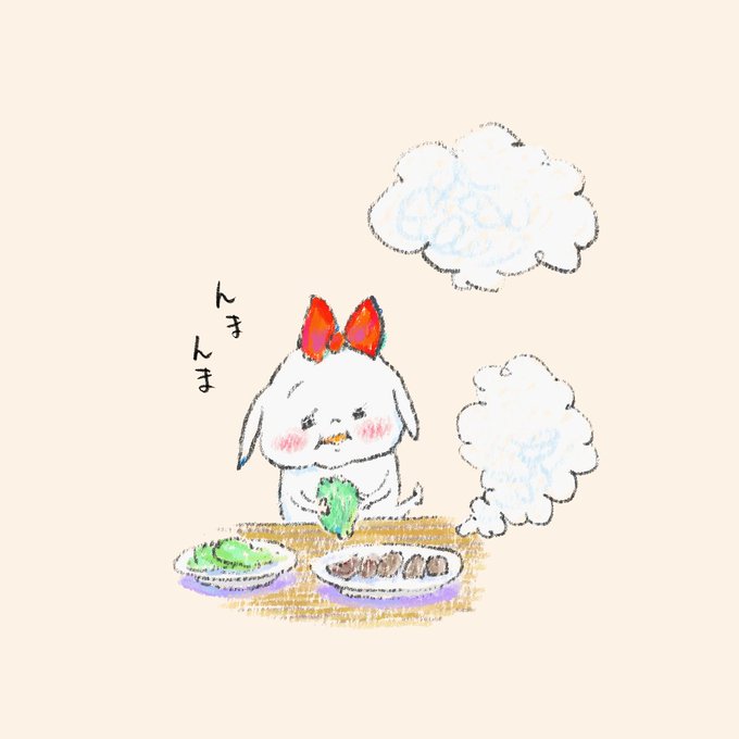 チッチャンユキウサ楽しいゴハン こないだはサンチュを手に入れられなかったから、リベンジしたよ。チッチャンはあきらめない漢なのだ!豚バラでリベンジ~!んまねぇ!んまねぇ!ユキウサは喜んでいたけど、チッチャンはめんどくさいから、葉っぱで肉を巻きません。 #イラスト #まんが #マンガ #漫画