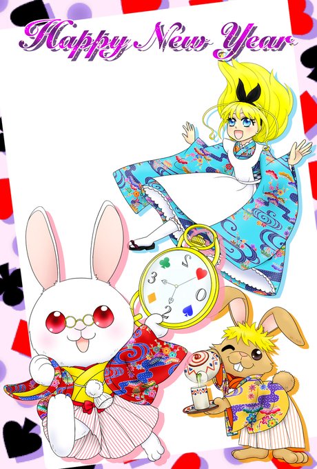 年賀状の国のアリス・卯年 #オリジナル #沖縄 #不思議の国のアリス #紅型 #和風 #年賀状 #琉球 #動物 #卯年 #うさぎ https://t.co/jHgfvpd3ib