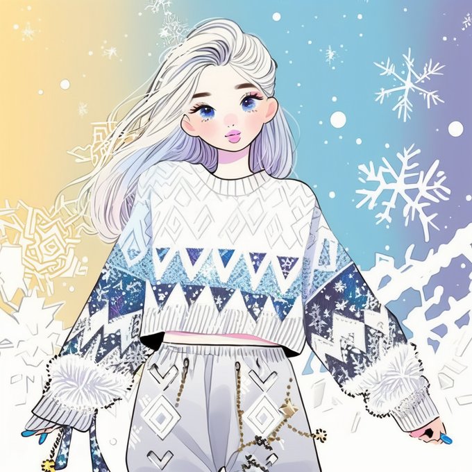 こちらは雪の結晶背景とセーターちゃん2枚です☺️