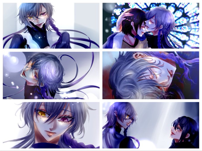 @Toribamu そしてこれはDM間で描かせていただいた灰くんとのイベントスチルでした 差分というか影なしもいれとこ……グレー髪三つ編みペアなんだなあ……